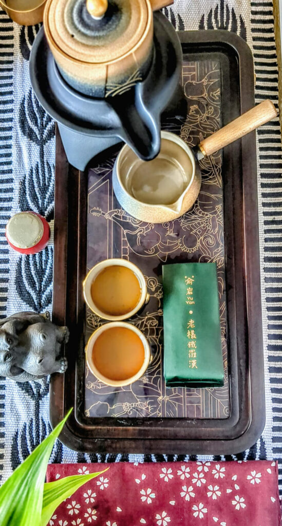I believe the best way to enjoy Yu Yan’s Lao Cong Tie Luo Han tea is on its own, so you can fully engage all your senses in the tea. However, it would go well with savory foods like dumplings and roasted nuts. Among sweet foods, you can try this tea with dark chocolate.